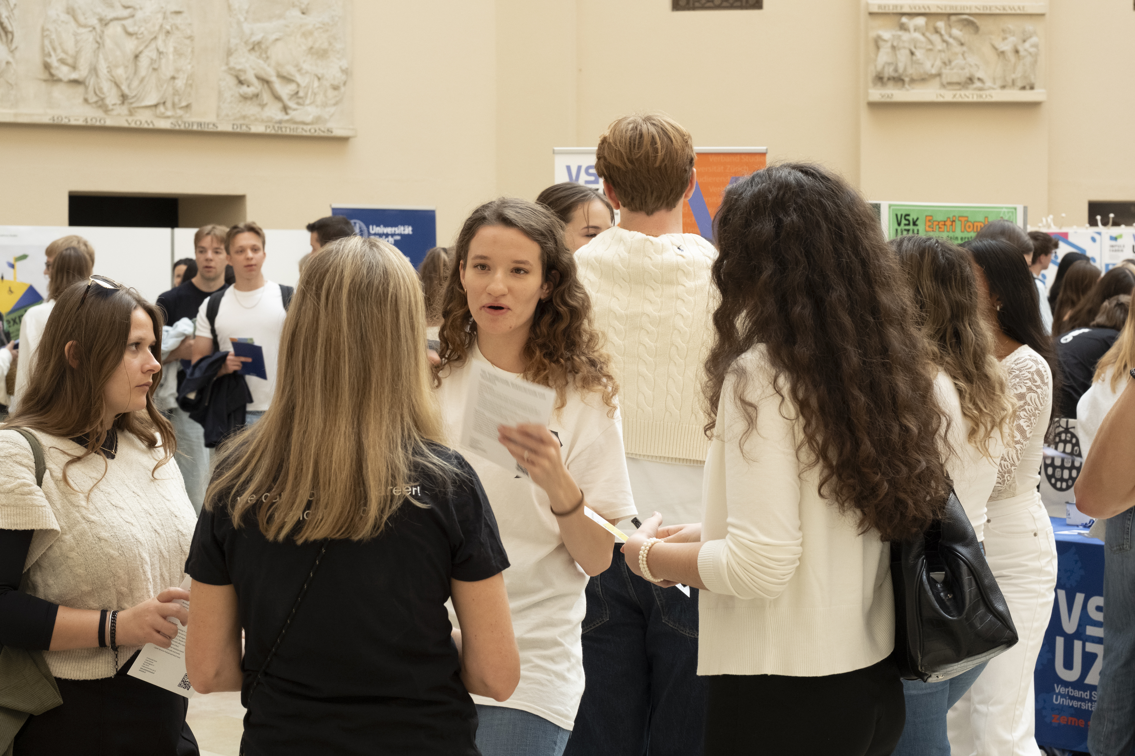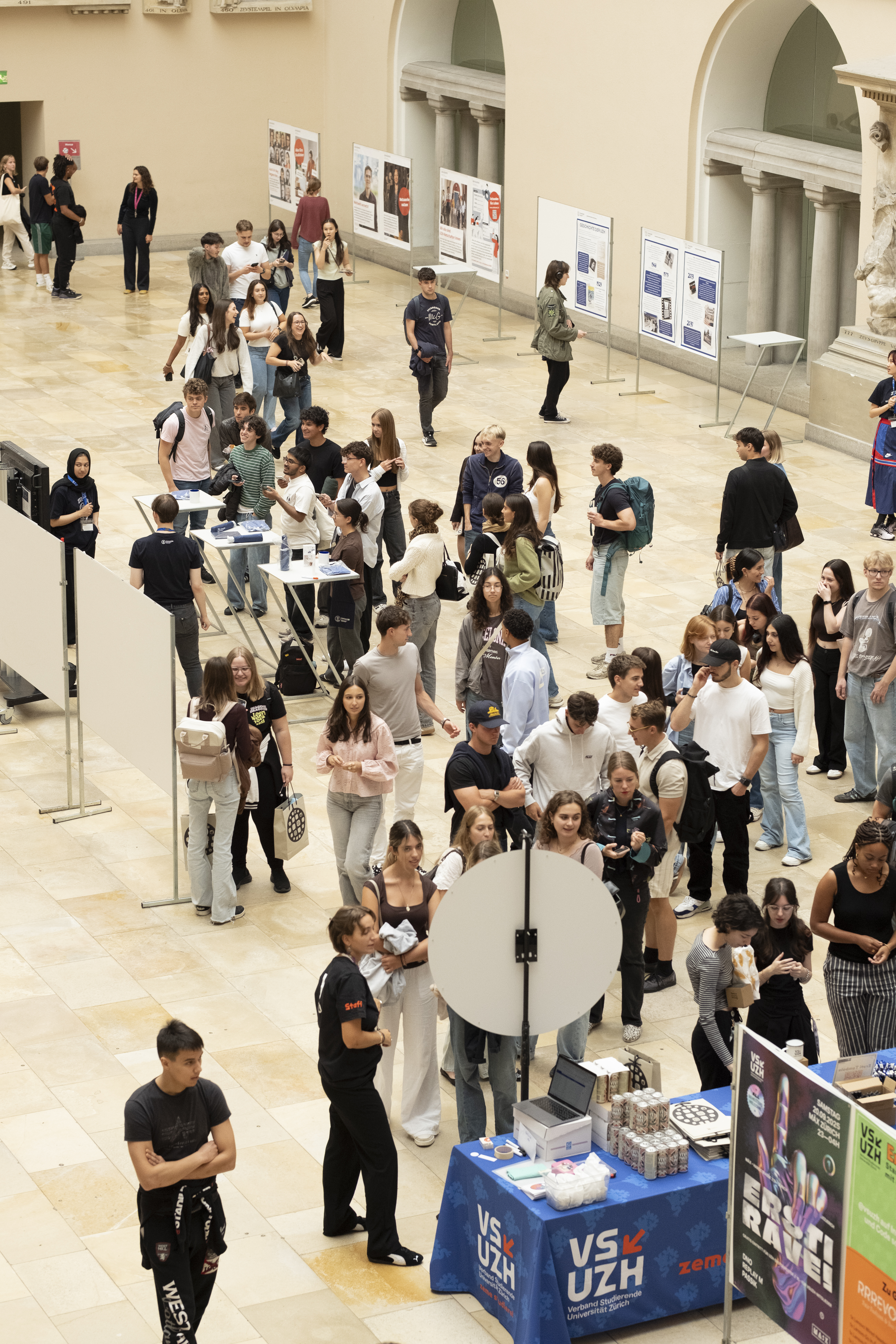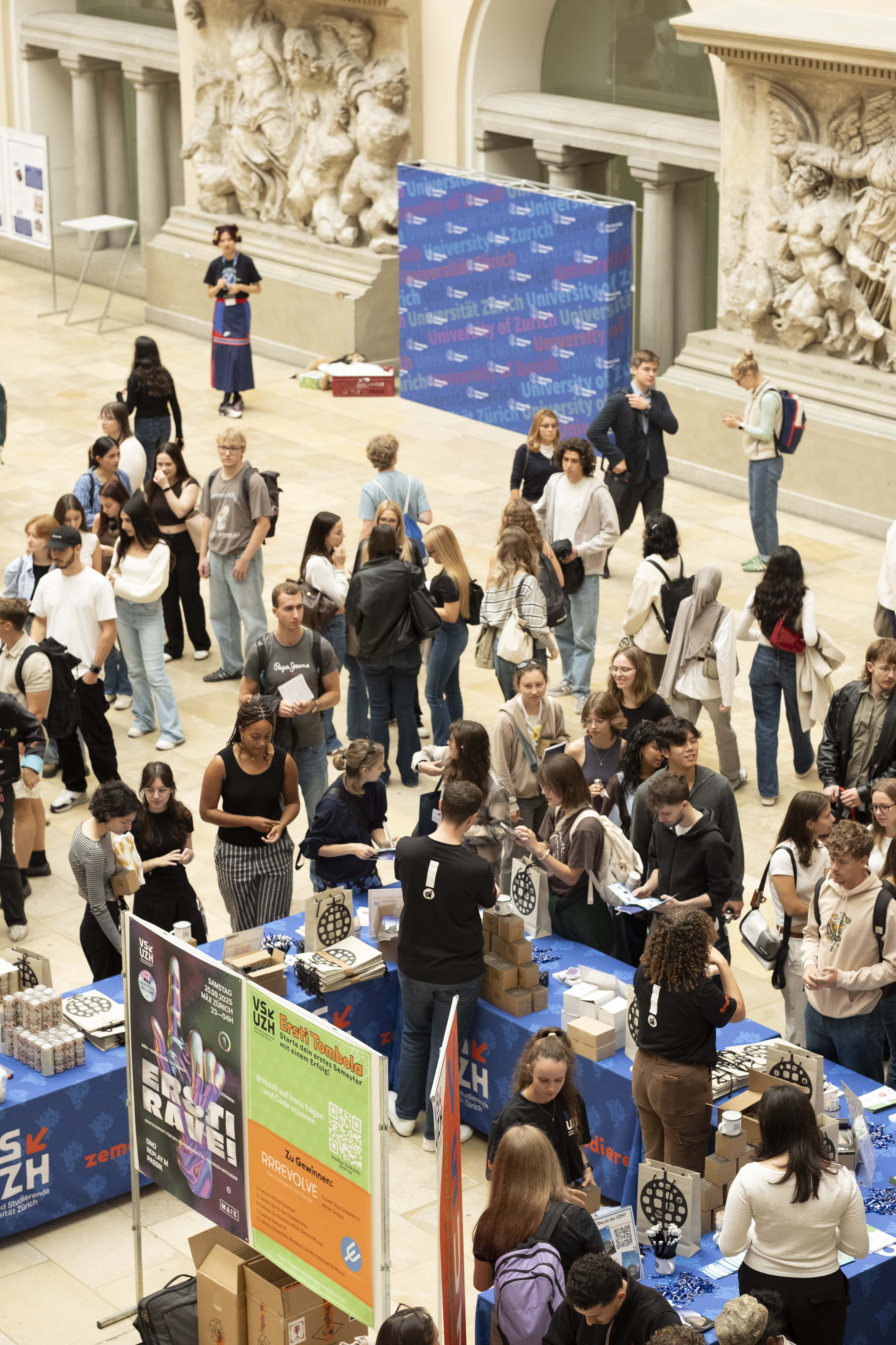 Die Erstsemestrigentage 2025 boten vielfältige Einblicke in den Studienstart an der Universität Zürich: Vom Warm-up Day über Präsentationen bis hin zur Messe im Lichthof. Die Aufnahmen zeigen besondere Momente, Begegnungen und Eindrücke, die diese Tage geprägt haben. Blättere durch die Impressionen und erlebe noch einmal, wie der Semesterstart an der UZH gefeiert wurde.